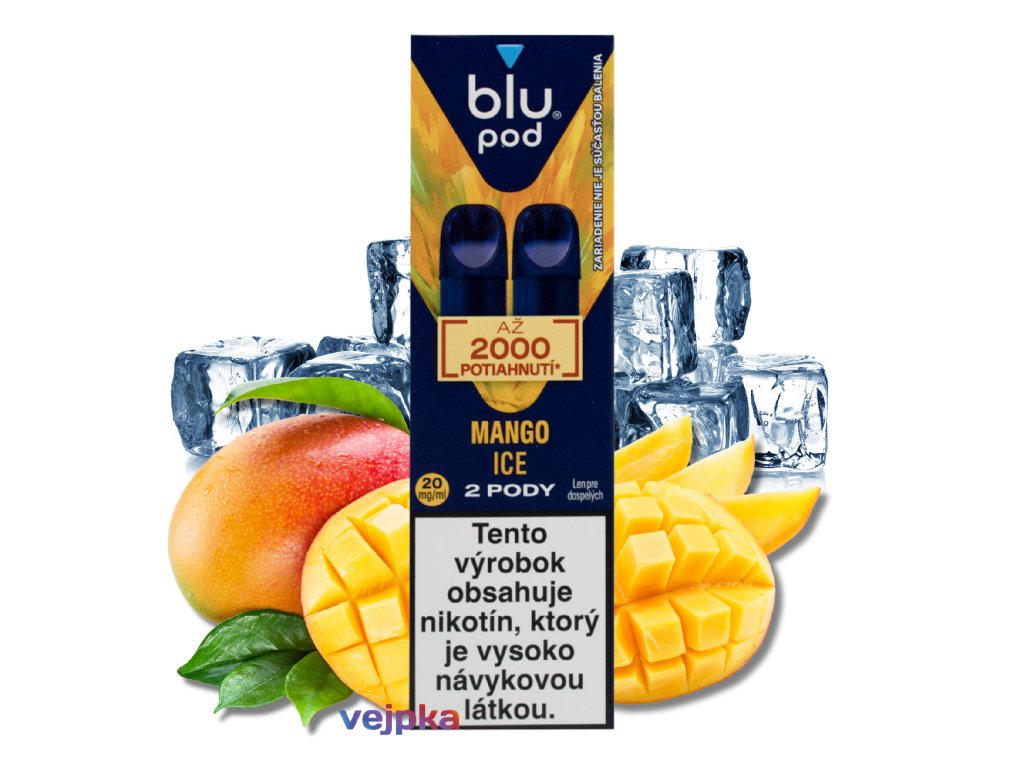 Blu Vape POD Mango Ice prináša exotickú chuť zrelého manga v spojení s jemným ľadovým efektom, ktorý dokonale zvýrazňuje jeho sladkú a šťavnatú arómu. Balenie obsahuje 2 prednaplnené pody určené pre zariadenia Blu Bar Vape, každý s objemom 2 ml a obsahom nikotínu 20 mg/ml. Ide o ideálne riešenie pre tých, ktorí chcú vymeniť prázdny pod za nový bez potreby dopĺňania e-liquidu.