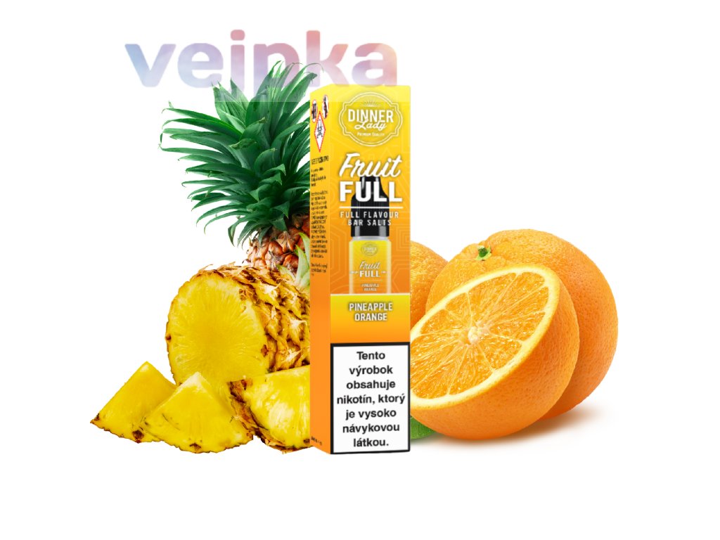 Sladká tropická chuť ananásu obohatená o svieži citrusový nádych pomaranča – tak chutí Dinner Lady Bar Salts Pineapple Orange. Táto lahodná kombinácia prináša exotickú sviežosť ideálnu na celodenné vapovanie.