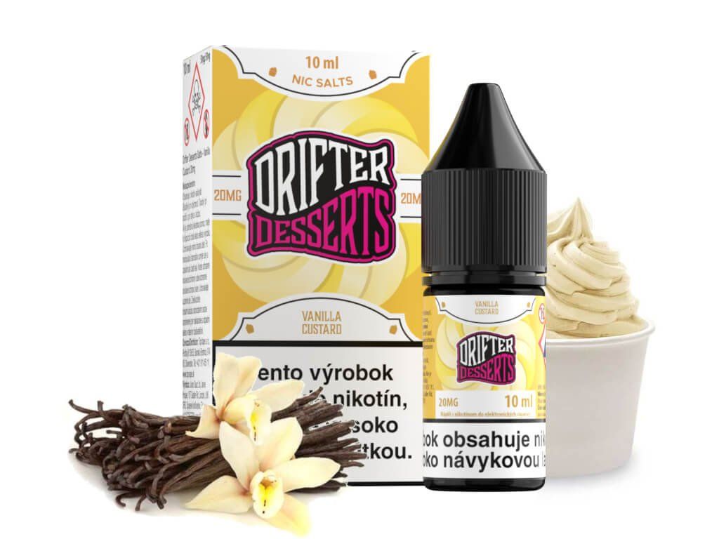 Objavte sladký zážitok s e-liquidom Drifter Desserts Salts Vanilla Custard! Táto lahodná náplň prináša bohatú a jemnú chuť krémového vanilkového pudingu, ktorá poteší každého milovníka dezertov. Vďaka obsahu nikotínovej soli je ideálnou voľbou pre používateľov POD systémov a MTL e-cigariet. Užite si každodenné vapovanie s krémovým a plným liquidom Drifter Vanilla Custard, ktorý je dostupný v dvoch variantoch obsahu nikotínu – 10 mg a 20 mg.