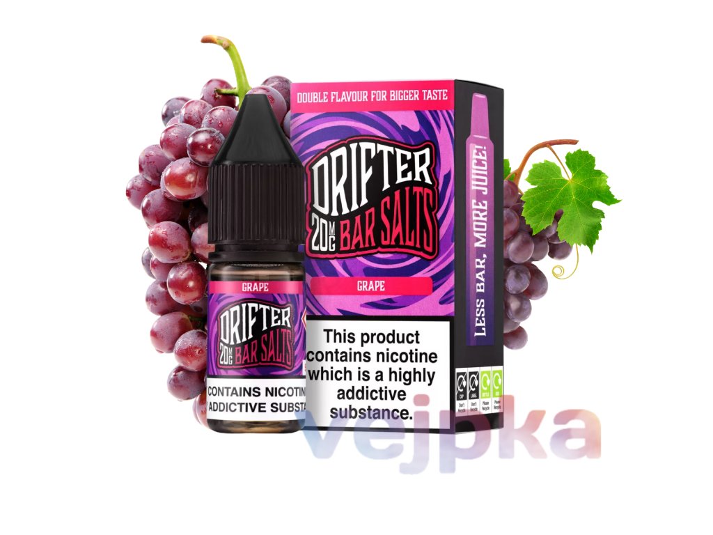 Drifter Bar Salts Grape je určený pre každého, kto hľadá bohatú ovocnú príchuť s jemným nikotínovým hitom. Odporúčame ho pre používateľov POD systémov a MTL e-cigariet, ktorí preferujú štýl poťahovania ústa-pľúca (MTL). Skvelá voľba aj pre fajčiarov, ktorí prechádzajú na vapovanie a obľubujú sladké a známe chute.