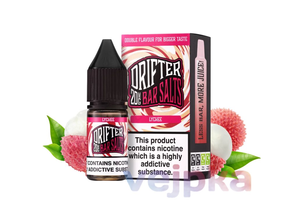 Objavte jemne exotický zážitok s e-liquidom Drifter Bar Salts Lychee! Táto náplň prináša autentickú chuť zrelého liči s kvetinovým nádychom a jemnou sladkosťou, ktorá osvieži a zároveň poteší vaše zmysly. Vďaka obsahu nikotínovej soli je ideálnou voľbou pre používateľov POD systémov a MTL e-cigariet. Užite si každodenné vapovanie s elegantne ovocnou chuťou Drifter Lychee, ktorý je dostupný v dvoch variantoch obsahu nikotínu – 10 mg a 20 mg.