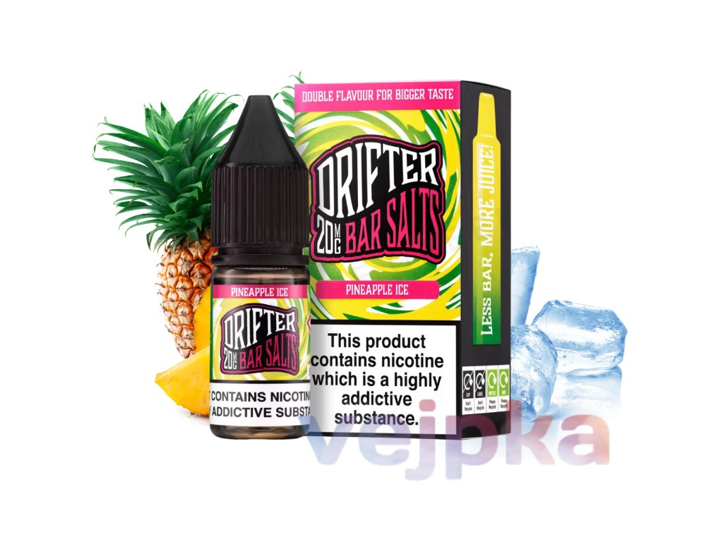 Zažite tropické osvieženie s e-liquidom Drifter Bar Salts Pineapple Ice! Táto náplň prináša intenzívnu a sladkú chuť zrelého ananásu v kombinácii s jemným ľadovým efektom, vďaka čomu je ideálna na každodenné vapovanie aj letné chvíle. Vďaka obsahu nikotínovej soli je ideálnou voľbou pre používateľov POD systémov a MTL e-cigariet. Doprajte si exotický chuťový zážitok s Drifter Pineapple Ice, dostupný v dvoch variantoch obsahu nikotínu – 10 mg a 20 mg.