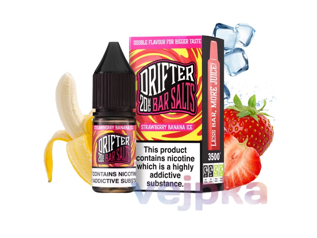 Drifter Bar Salts Strawberry Banana Ice je určený pre vaperov, ktorí preferujú sladké a jemne krémové ovocné chute s osviežujúcim efektom. Odporúčame ho pre používateľov POD systémov a MTL e-cigariet, ako aj pre tých, ktorí prechádzajú z klasických cigariet na jemnejší a chutnejší zážitok.