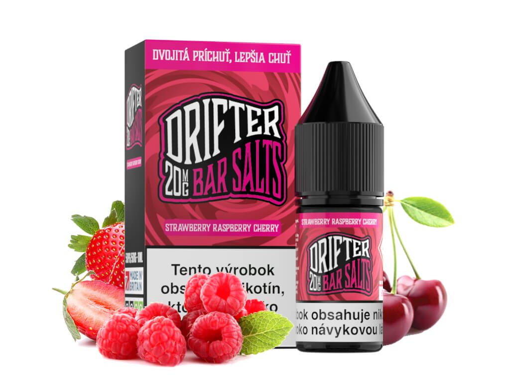 Zažite ovocnú extázu s e-liquidom Drifter Bar Salts Strawberry Raspberry Cherry! Táto výnimočná kombinácia jahody, maliny a čerešne prináša sladký a plný zážitok, ktorý ulahodí každému milovníkovi ovocia. Vďaka obsahu nikotínovej soli je ideálnou voľbou pre používateľov POD systémov a MTL e-cigariet. Drifter Strawberry Raspberry Cherry je dostupný v dvoch variantoch obsahu nikotínu – 10 mg a 20 mg.