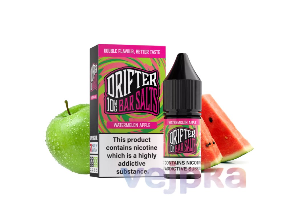 Drifter Bar Salts Watermelon Apple je určený pre fanúšikov šťavnatých a sviežich ovocných kombinácií. Odporúča sa pre používateľov POD systémov a MTL e-cigariet, ako aj pre tých, ktorí chcú nahradiť klasické cigarety chutným a jemným vapovaním.