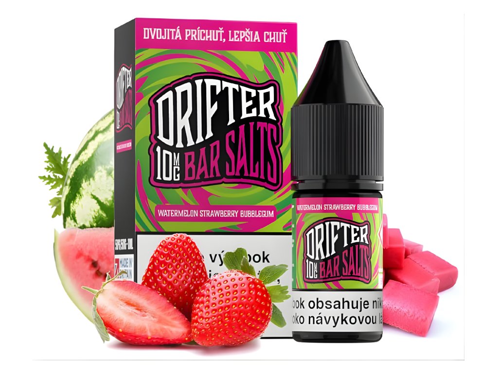 Drifter Bar Salts Watermelon Strawberry Bubblegum je skvelou voľbou pre vaperov, ktorí majú radi intenzívne sladké a ovocné chute s cukríkovým podtónom. Vhodný pre používateľov POD systémov a MTL e-cigariet, ako aj pre tých, ktorí hľadajú hravú a chutnú alternatívu ku klasickému fajčeniu.