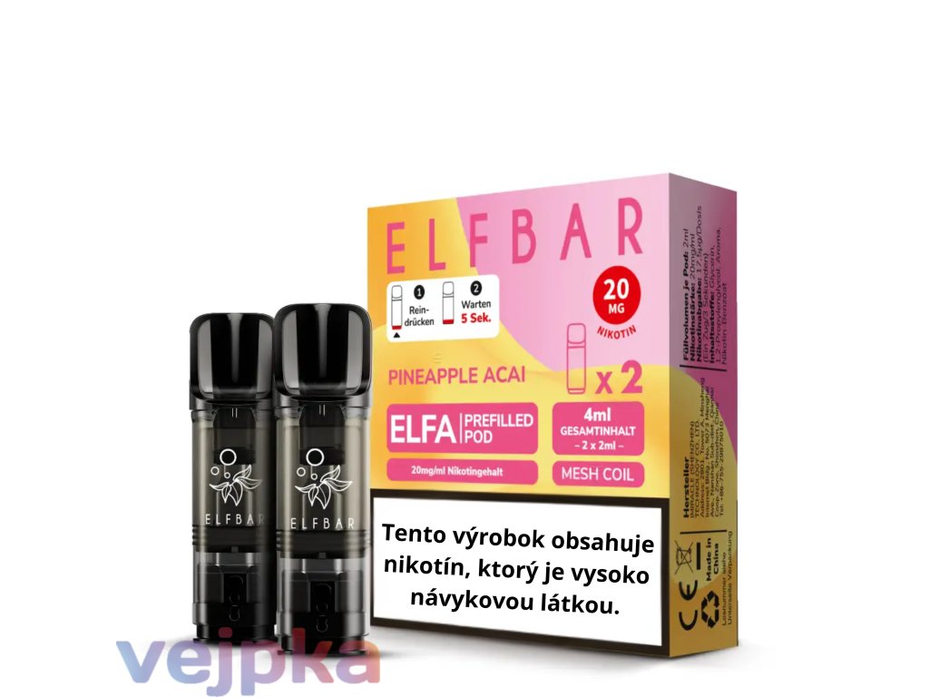 Každé balenie Elf Bar ELFA Pineapple Acai obsahuje 2× predplnený POD. Transparentný dizajn náplní umožňuje sledovať zostávajúce množstvo e-liquidu. Vďaka jednoduchej výmene si môžete ľahko meniť príchute podľa nálady.