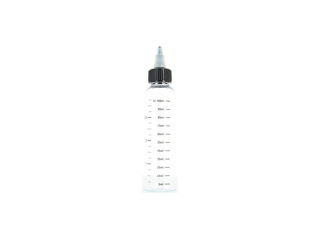 Fľaša na miešanie alebo skladovanie eliquidov s ryskou a twist uzáverom.