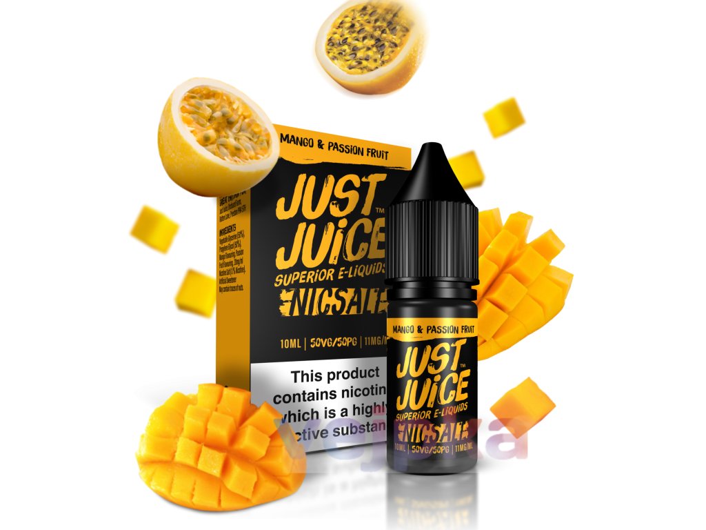 Just Juice Mango & Passion Fruit je určený pre vaperov, ktorí milujú exotické ovocné chute plné šťavnatosti a sviežosti. Výborná voľba pre používateľov POD systémov a MTL e-cigariet, aj pre fajčiarov prechádzajúcich z klasických cigariet.