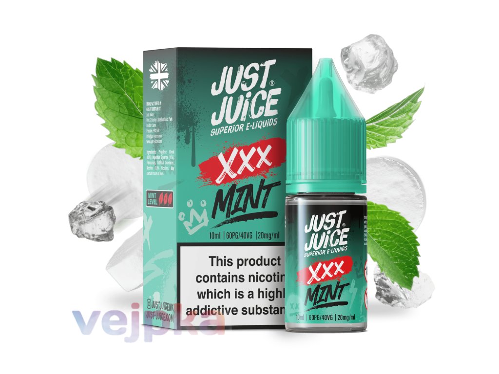 Ak hľadáte unikátnu kombináciu chladivej mäty a ovocia, Just Juice Salt XXX Mint je prémiový liquid Just Juice z Veľkej Británie, ktorý vám prinesie svieži a vyvážený zážitok pri každom potiahnutí.