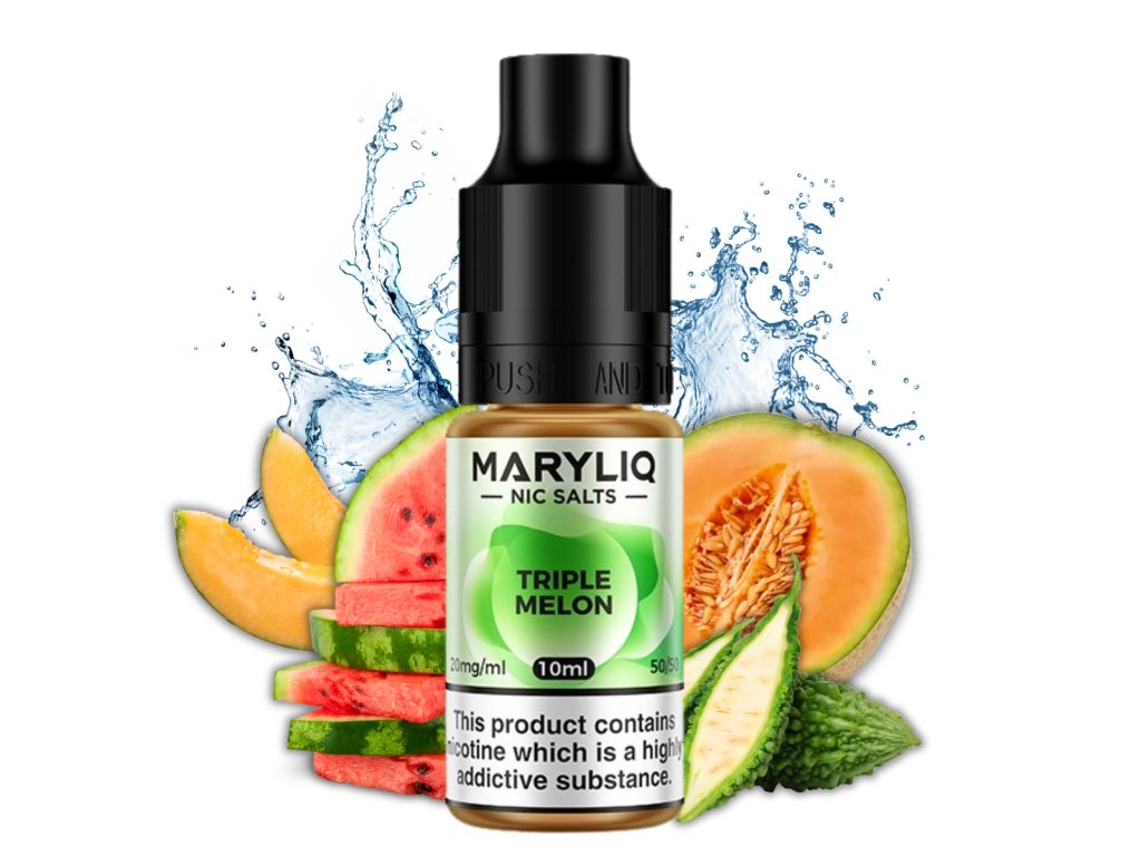 Zažite intenzívnu ovocnú exploziu s e-liquidom MARYLIQ Triple Melon. Táto príchuť spája tri druhy melónov – sladký vodový melón, svieži žltý melón a jemne exotický galia melón. Výsledkom je šťavnatý, svieži a lahodný mix ideálny na každodenné vapovanie. Vďaka použitiu nikotínovej soli ponúka e-liquid MARYLIQ jemný nikotínový hit a hladké vapovanie, ktoré si vychutnáte pri každom potiahnutí.