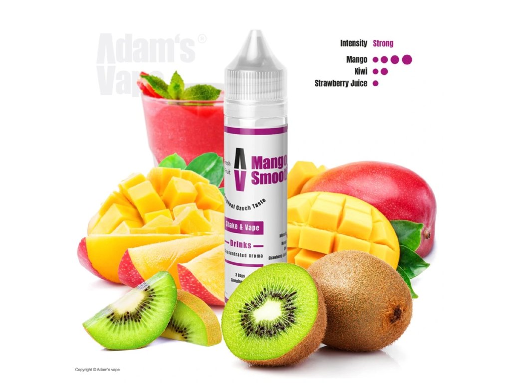 Adam’s Vape Mango Smoothie je ovocná Shake & Vape aróma s dokonale vyváženou kombináciou zrelého manga, sladkokyslého kiwi a šťavnatej jahody. Výsledkom je svieža, tropická a zároveň jemne krémová chuť, ktorá verne pripomína exotický ovocný smoothie. Aróma neobsahuje nikotín a pred použitím ju treba zmiešať s bázou a boosterom.