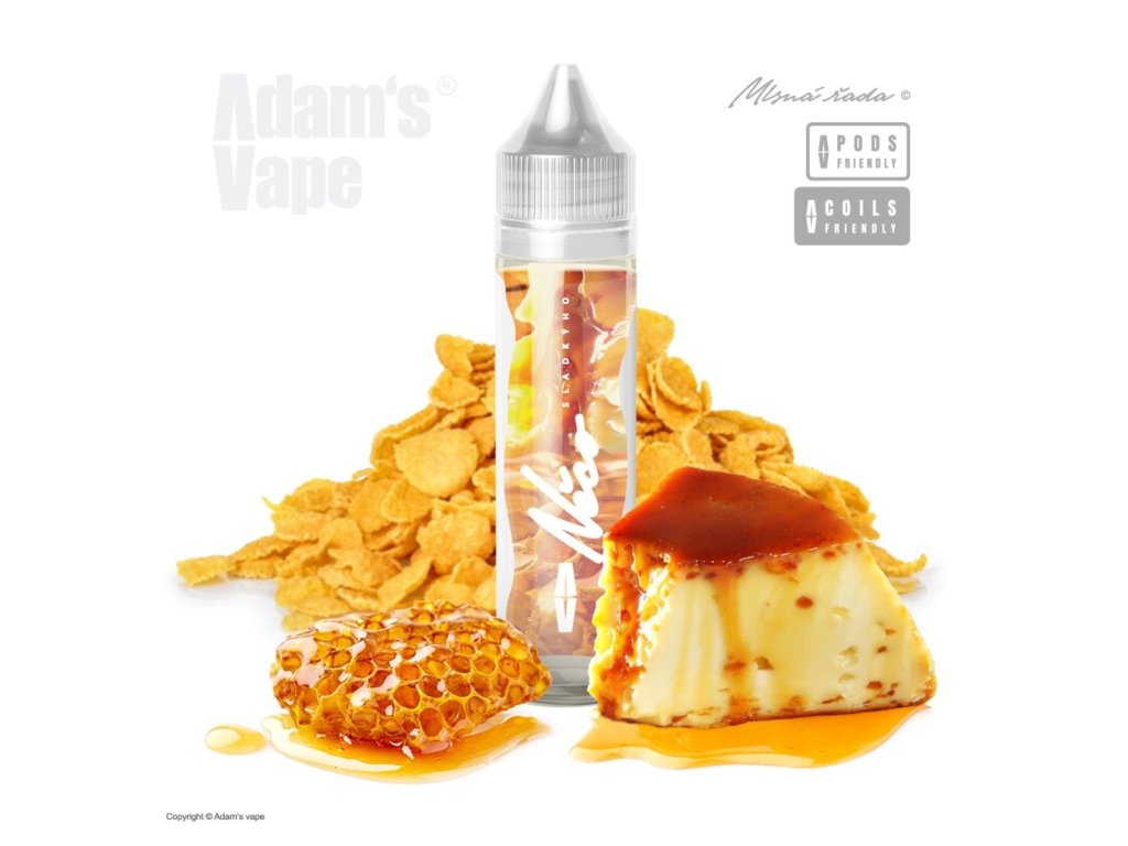 Adam’s Vape Něco Sladkýho je dezertná Shake & Vape aróma zo série Mlsná Řada, ktorá prináša lahodnú kombináciu cornflakes, medu a krémového cheesecaku. Výsledkom je sladká a bohatá chuť, ktorá spája chrumkavé cereálne tóny s jemnou medovou sladkosťou a krémovým dezertným základom. Aróma je ideálna pre tých, ktorí hľadajú dezertný longfill s výrazným cukrárskym charakterom. Neobsahuje nikotín a je určená na miešanie s bázou a boosterom.