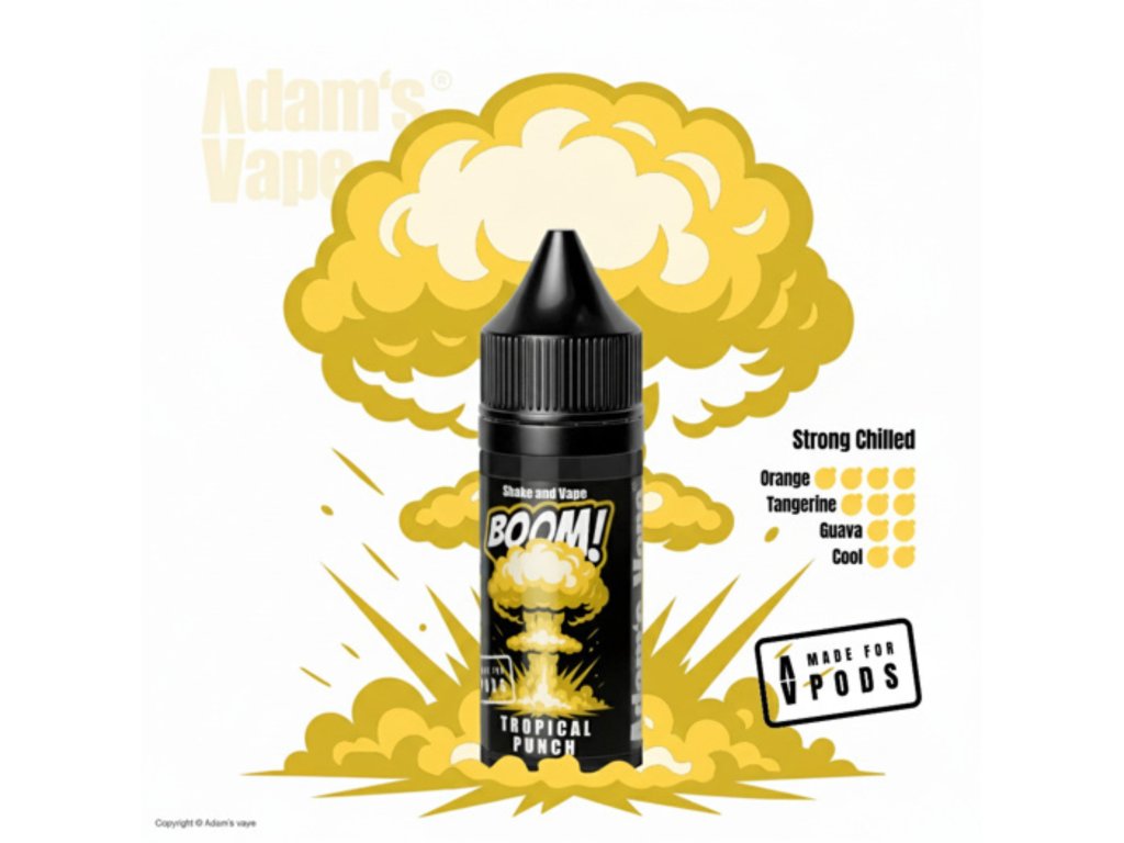 Adam’s Vape Tropical Punch je výrazne sladká Shake & Vape aróma zo série BOOM Series, ktorá prináša osviežujúcu kombináciu pomaranča, mandarínky a exotickej guavy doplnenú chladivým efektom. Výsledkom je šťavnatá tropická chuť s výraznou sladkosťou a sviežim citrusovým charakterom. Aróma je ideálna pre tých, ktorí hľadajú sladký ovocný longfill s exotickým nádychom. Neobsahuje nikotín a je určená na miešanie s bázou a boosterom.