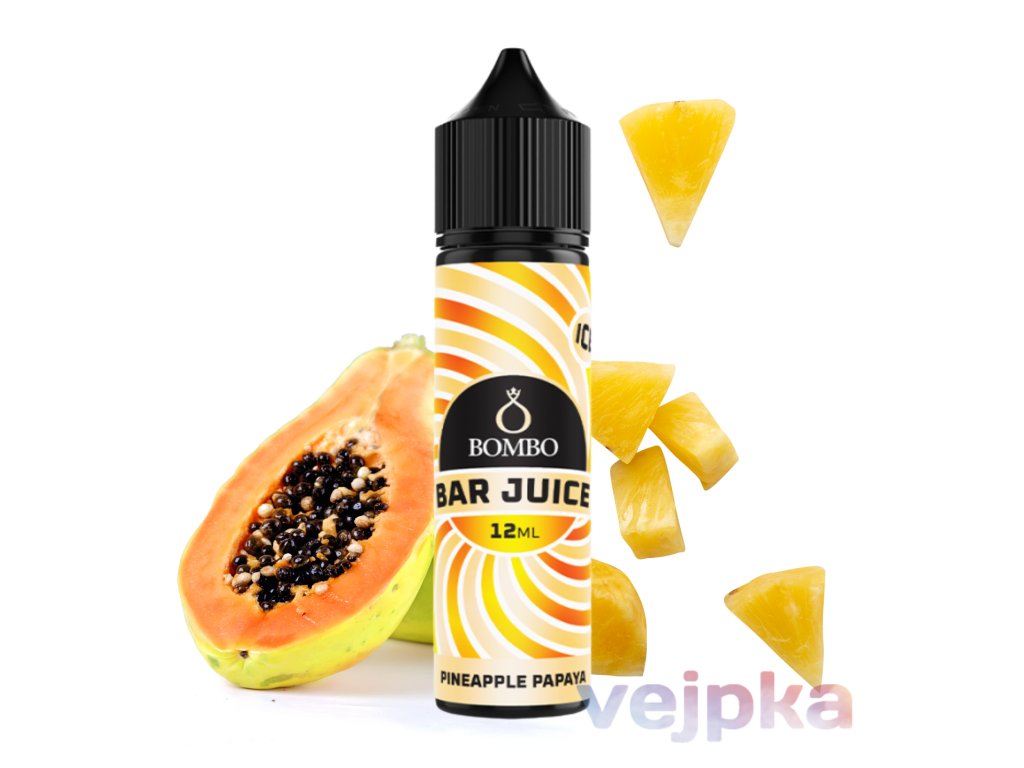 Longfill alebo Shake and Vape BOMBO BAR Juice Pineapple Papaya je vysoko koncentrovaná aróma s tropickou kombináciou ananásu a papáje, ktorú je nutné zmiešať s bázou a boostrom pre dosiahnutie finálneho e-liquidu. Shake and Vape fľaštička je predpripravená tak, že obsahuje menší objem tekutiny než jej celkový objem – stačí len doliať bázu a booster, pretrepať a nechať odstáť. Tieto produkty sú bezpečné, v rovnakej kvalite ako hotové e-liquidy, a pri manipulácii odporúčame používať ochranné prostriedky. Aróma neobsahuje nikotín, ale vzťahuje sa na ňu spotrebná daň.