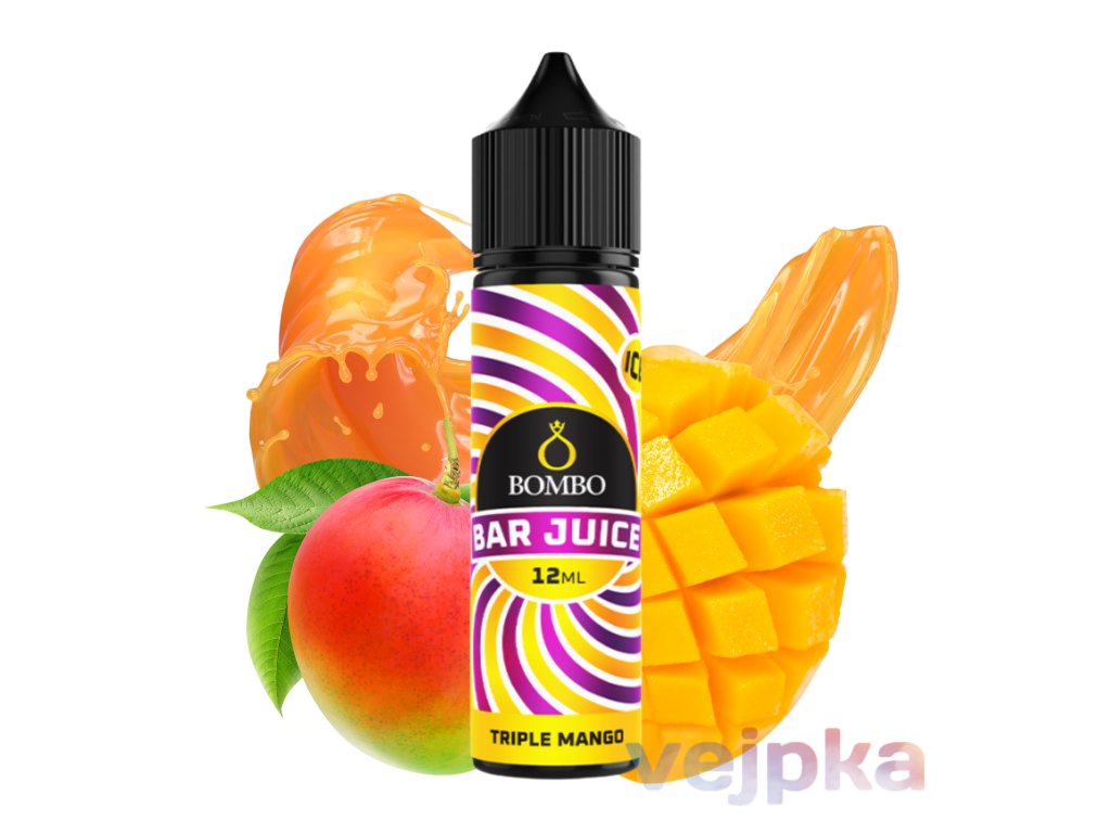 Longfill alebo Shake and Vape BOMBO BAR Juice Triple Mango je vysoko koncentrovaná aróma s intenzívnou kombináciou rôznych druhov manga, ktorú je nutné zmiešať s bázou a boostrom pre dosiahnutie finálneho e-liquidu. Shake and Vape fľaštička je predpripravená tak, že obsahuje menší objem tekutiny než jej celkový objem – stačí len doliať bázu a booster, pretrepať a nechať odstáť. Tieto produkty sú bezpečné, v rovnakej kvalite ako hotové e-liquidy, a pri manipulácii odporúčame používať ochranné prostriedky. Aróma neobsahuje nikotín, ale vzťahuje sa na ňu spotrebná daň.