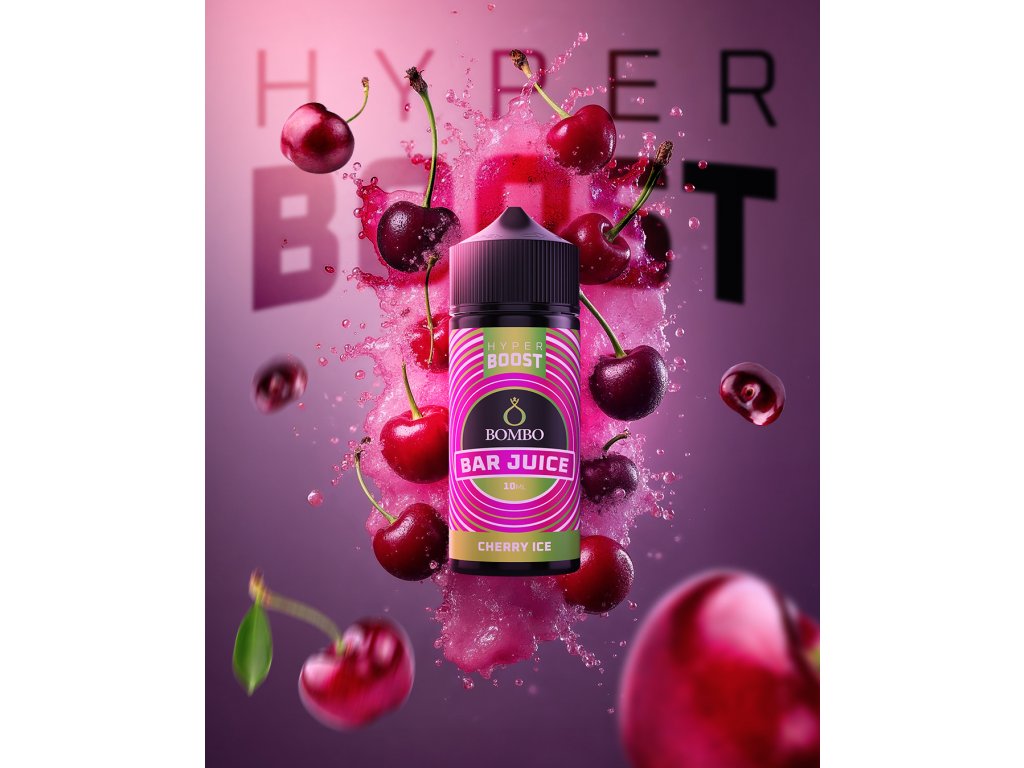 Bombo Bar Juice HYPER Boost Cherry Ice je extra koncentrovaná aróma s výraznou príchuťou sladkej čerešne a ľadového osvieženia, pripravená na miešanie s bázou a boostrom pre vytvorenie hotového e-liquidu. Táto HYPER Boost séria ponúka 10 ml superkoncentrovanej arómy vo fľaši s objemom 120 ml, čo umožňuje pridať až 110 ml bázy alebo boosterov a pritom získať plnú, stabilnú a intenzívnu chuť. Produkty sú bezpečné, kvalitou porovnateľné s hotovými e-liquidmi a aróma neobsahuje nikotín, no vzťahuje sa na ňu spotrebná daň.