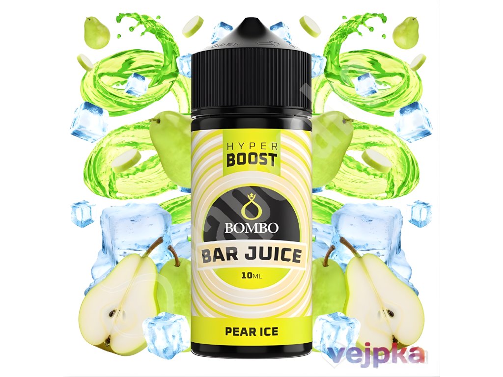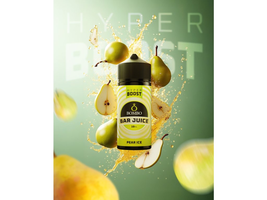 Bombo Bar Juice HYPER Boost Pear Ice je extra koncentrovaná aróma so sladkou, šťavnatou chuťou zrelej hrušky a výrazným ľadovým efektom, určená na prípravu e-liquidu zmiešaním s bázou a boostrom. HYPER Boost séria prináša vysokú koncentráciu arómy v praktickom balení – 10 ml superkoncentrátu v 120 ml fľaši, čo umožňuje doplniť až 110 ml bázy bez straty intenzity. Aróma neobsahuje nikotín, ale vzťahuje sa na ňu spotrebná daň.
