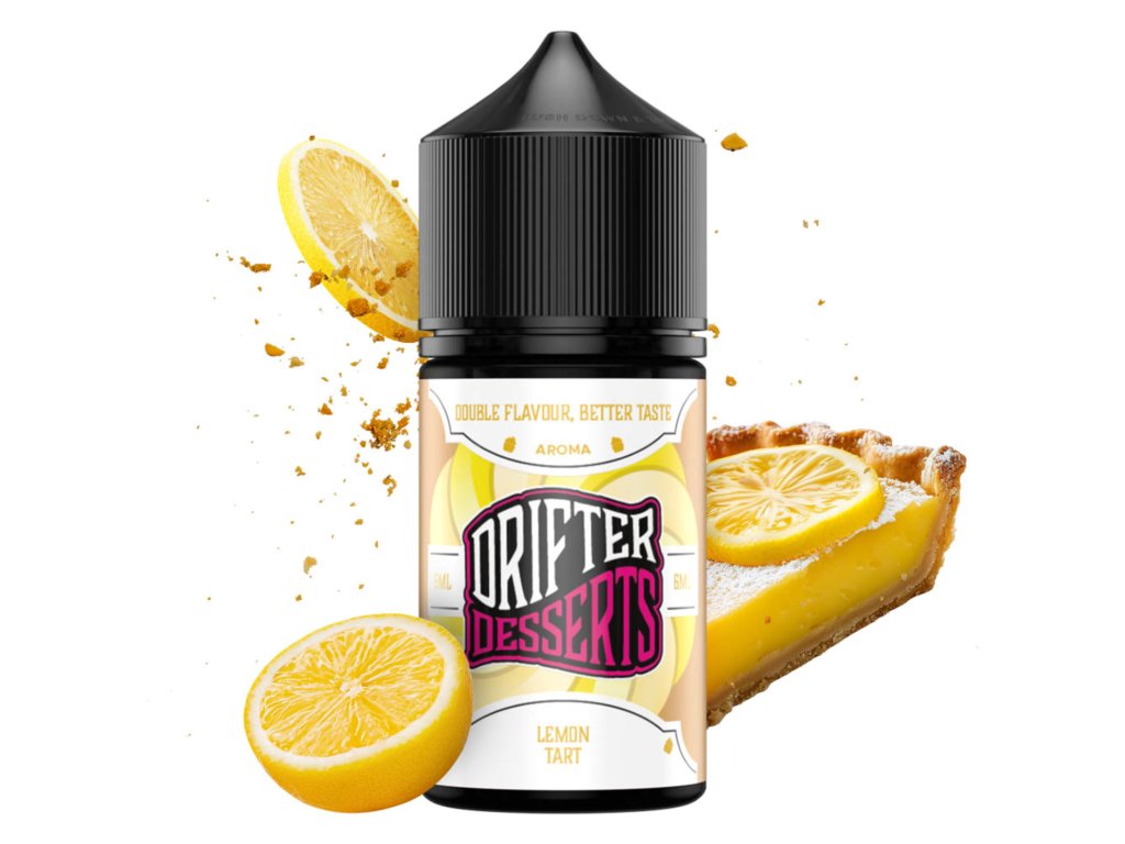 Longfill Drifter Desserts Lemon Tart prináša sviežu chuť citrónového koláča s jemným cestom. Je to vysoko koncentrovaná Shake and Vape aróma na zmiešanie s bázou a boostrom, aby vznikol hotový e-liquid. Fľaša obsahuje menšie množstvo arómy, než je jej celkový objem – stačí len doliať bázu, booster, pretrepať a nechať odstáť. Produkty sú bezpečné, vyrábané v rovnakej kvalite ako hotové e-liquidy, a pri manipulácii odporúčame používať ochranné prostriedky. Aróma neobsahuje nikotín, ale vzťahuje sa na ňu spotrebná daň.