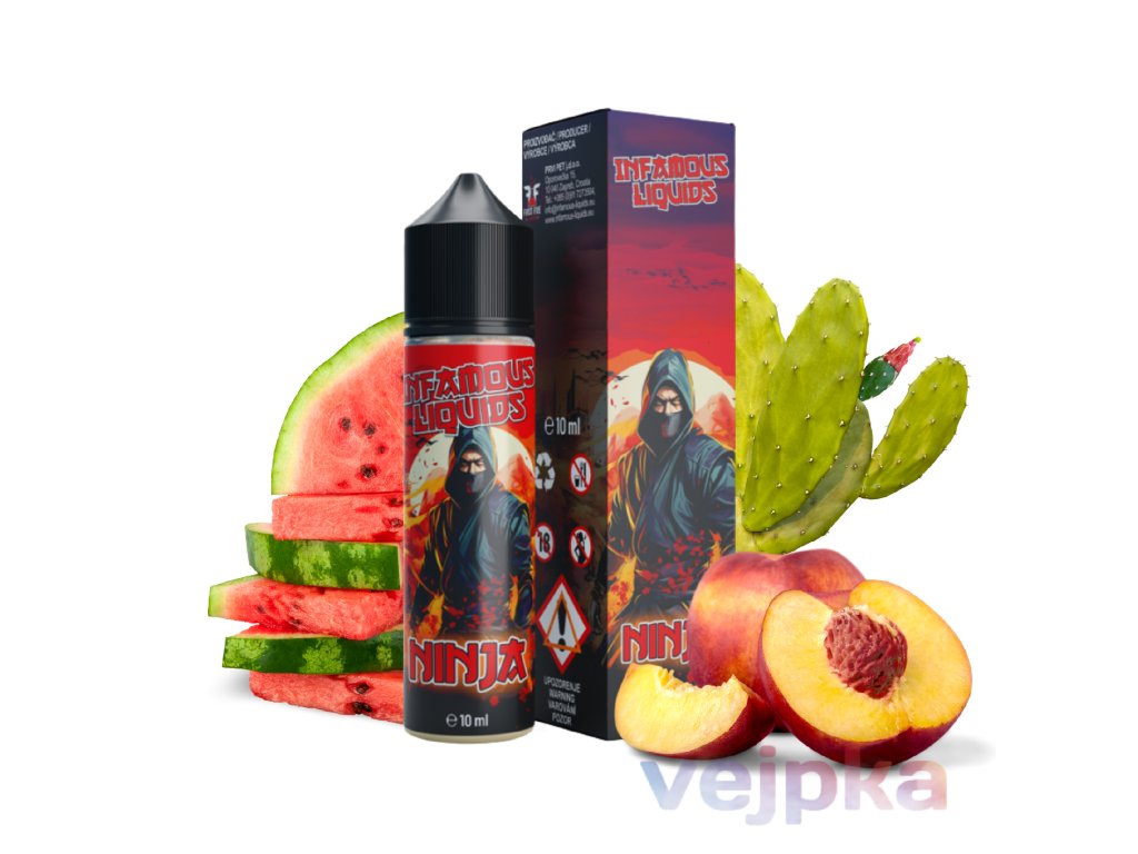 - Príchuť: Ninja (kaktus, melón, broskyňa, zelený čaj)