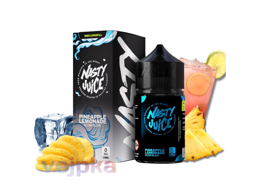 Nasty Juice Slow Blow longfill je osviežujúca tropická aróma s kombináciou sladkého ananásu, kyselkavej limetky a chladivého efektu. Prémiová zmes od britského výrobcu Dispergo Vaping prináša dokonale vyvážený mix exotickej sladkosti a sviežosti, ktorý vás prenesie priamo na pláž. Každá fľaštička obsahuje 10 ml koncentrovanej arómy v 60 ml fľaši – jednoducho pridajte bázu a booster, pretrepte a nechajte odstáť. Aróma neobsahuje nikotín a kvalitou sa vyrovná hotovým e-liquidom.