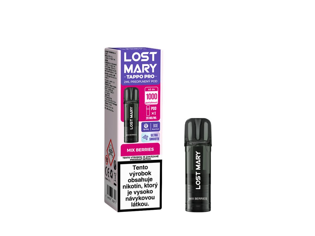 Lost Mary (Lost Mary Vape) je sesterská značka známeho výrobcu ELFBAR a patrí medzi najobľúbenejšie voľby pre tých, ktorí hľadajú bezstarostné vapovanie a autentickú chuť. Ponúkame dva tipy produktov: Lost Mary MARYLIQ – e-liquidy s nikotínovou soľou v 10 ml baleniach (10 mg a 20 mg) a Lost Mary Tappo POD – predplnené cartridge s 20 mg nikotínu pre uzavretý POD systém.