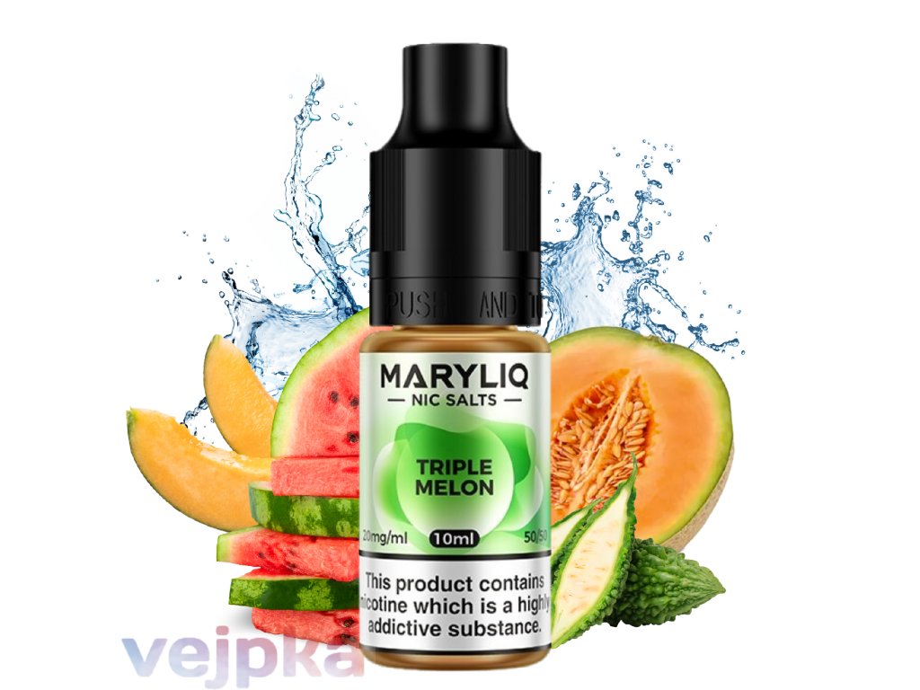 Ak túžite po intenzívnej ovocnej chuti, MARYLIQ Triple Melon je jasnou voľbou – dostupný v 10 mg/ml aj 20 mg/ml verzii.